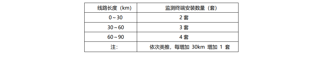 若架空线路长度在 30km 以内,则超过 30km,则按照如下原则增加配置输电线路分布式故障监测装置数量。