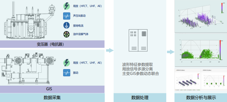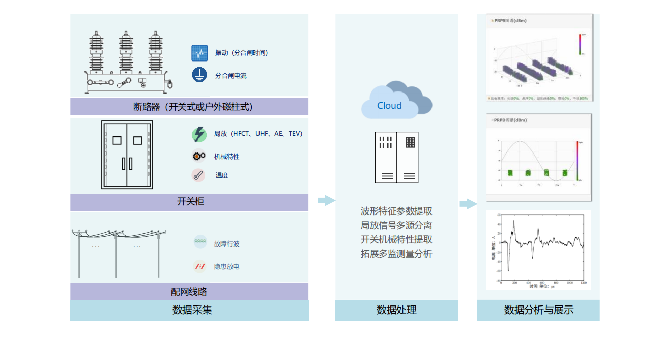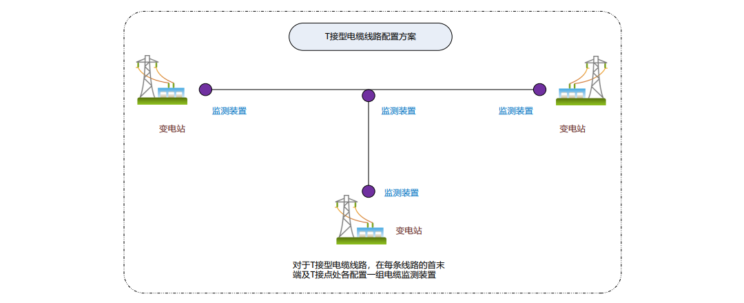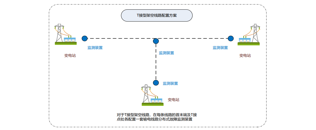 "输电线路故障诊断与隐患监测解决方案"可对架空线路、电缆线路、架空-电缆混合线路进行故障诊断和隐患放电监测分析,线路发生故障后可及时确定故障点准确位置,确定故障类型,指导线路检修工作工作;若需对输电线路的日常运行状态进行监测,可对架空线路的面临的复合绝缘子裂化、植被超高、绝缘子污秽、绝缘子覆冰、金具浮放电、导线断股等渐变缺陷进行监测预警;亦可对电缆线路的护层环流、隐患缺陷电流进行监测预警。